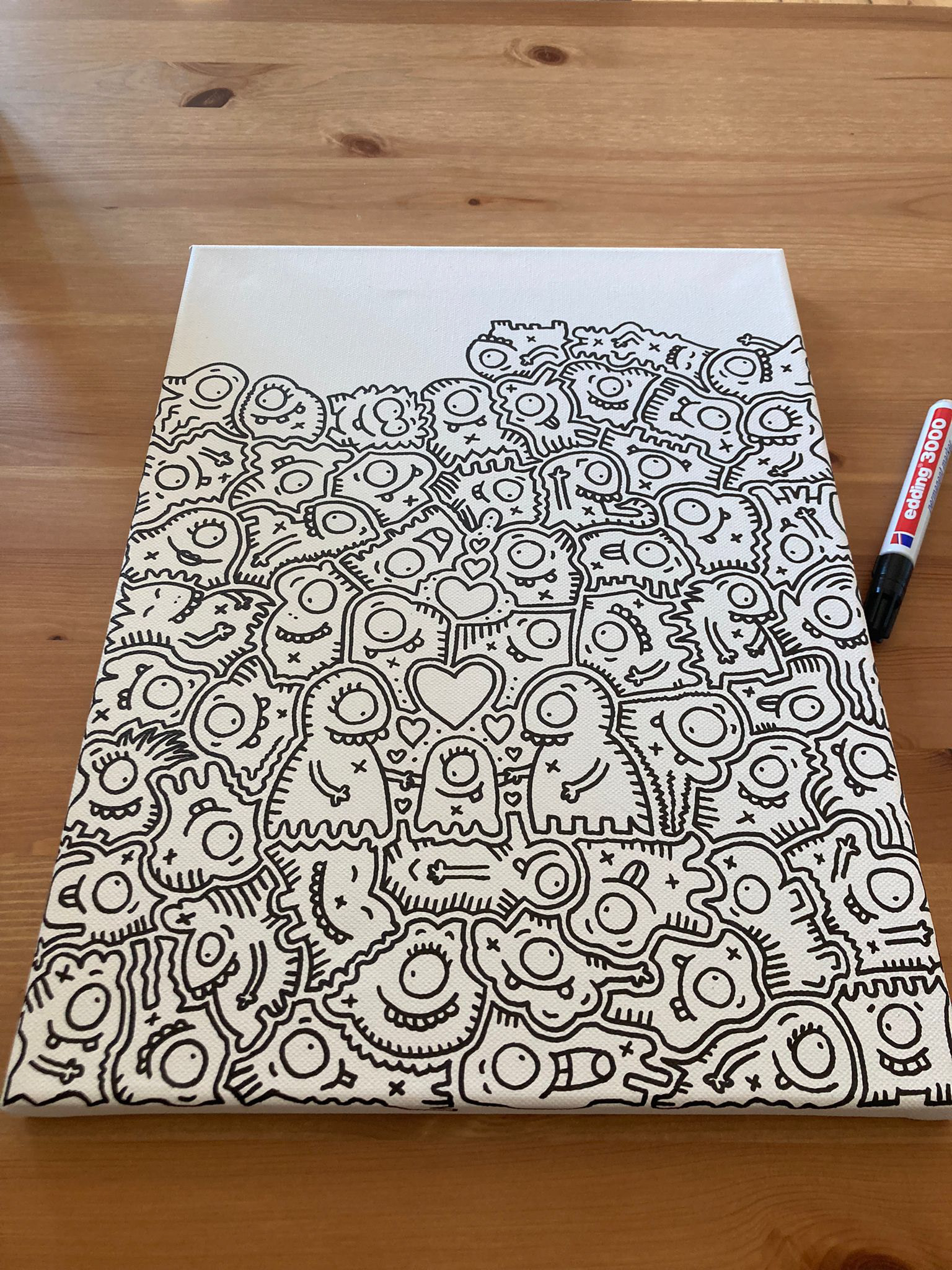 Binies with red hearts on an unframed canvas. Done on request for a family of 3 - SOLD